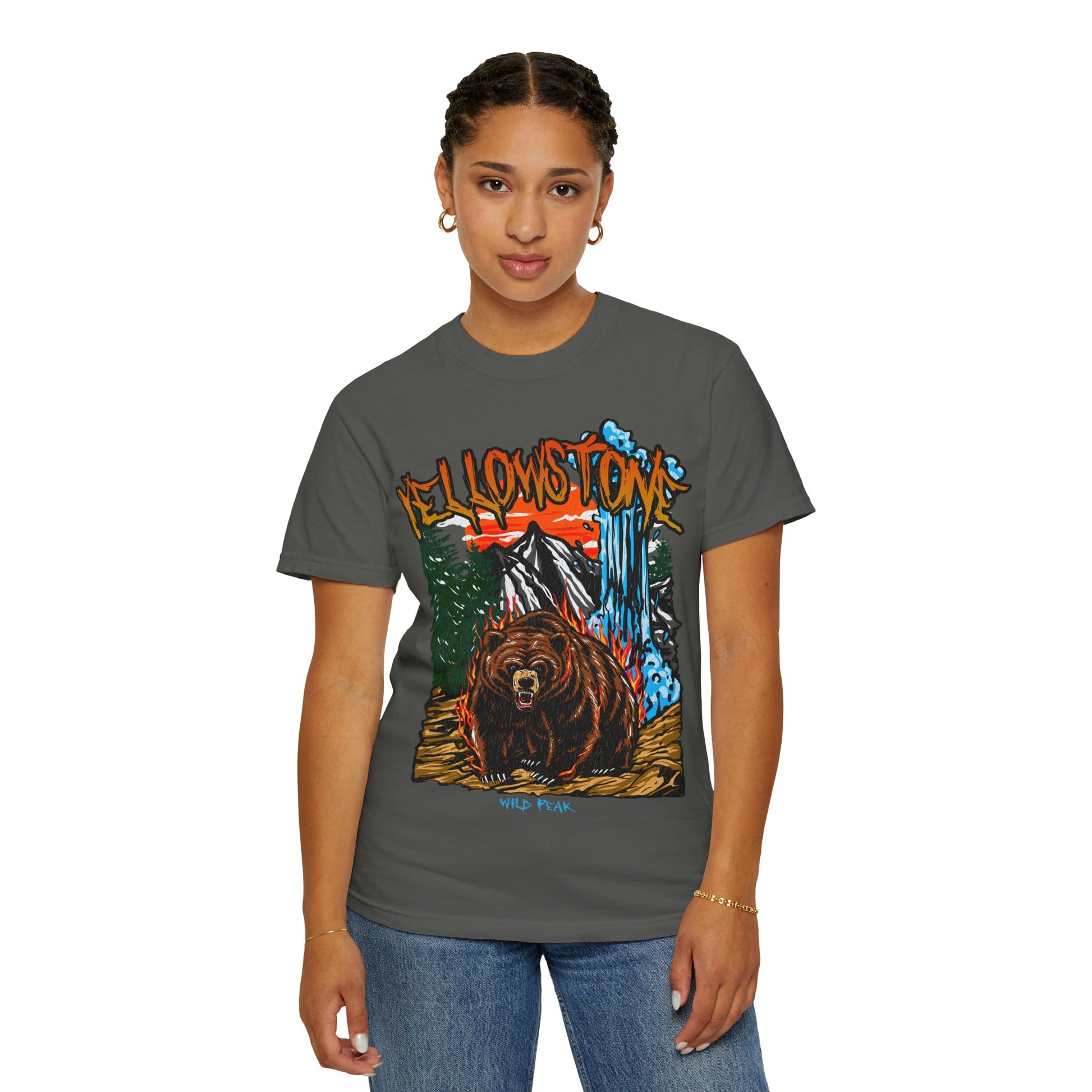 This is the wild at full volume—geysers exploding, bison blocking traffic, and a landscape that smells vaguely like rotten eggs and adventure. Yellowstone doesn’t do subtle—it boils, bubbles, and reminds you nature still runs the show. Built on a soft, tough tee made for cold mornings, sulfur steam, and that one wrong turn that becomes a story.