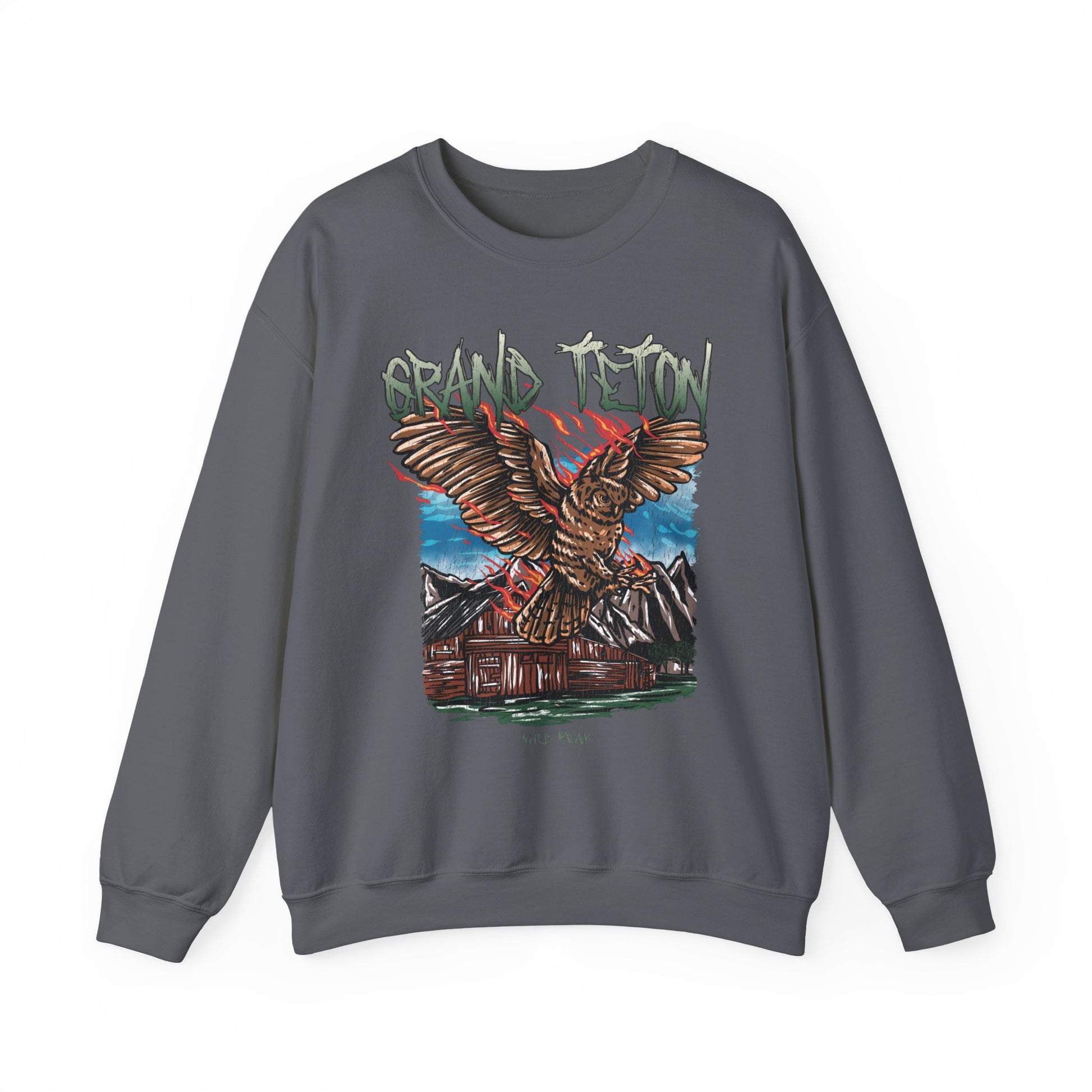 Embrace the untamed spirit of the wild with our Grand Teton & Great Horned Owl design from Wild Peak Apparel. This stunning print captures the rugged beauty of the Teton Range, paired with the piercing gaze of the Great Horned Owl, a true symbol of wisdom and strength.
