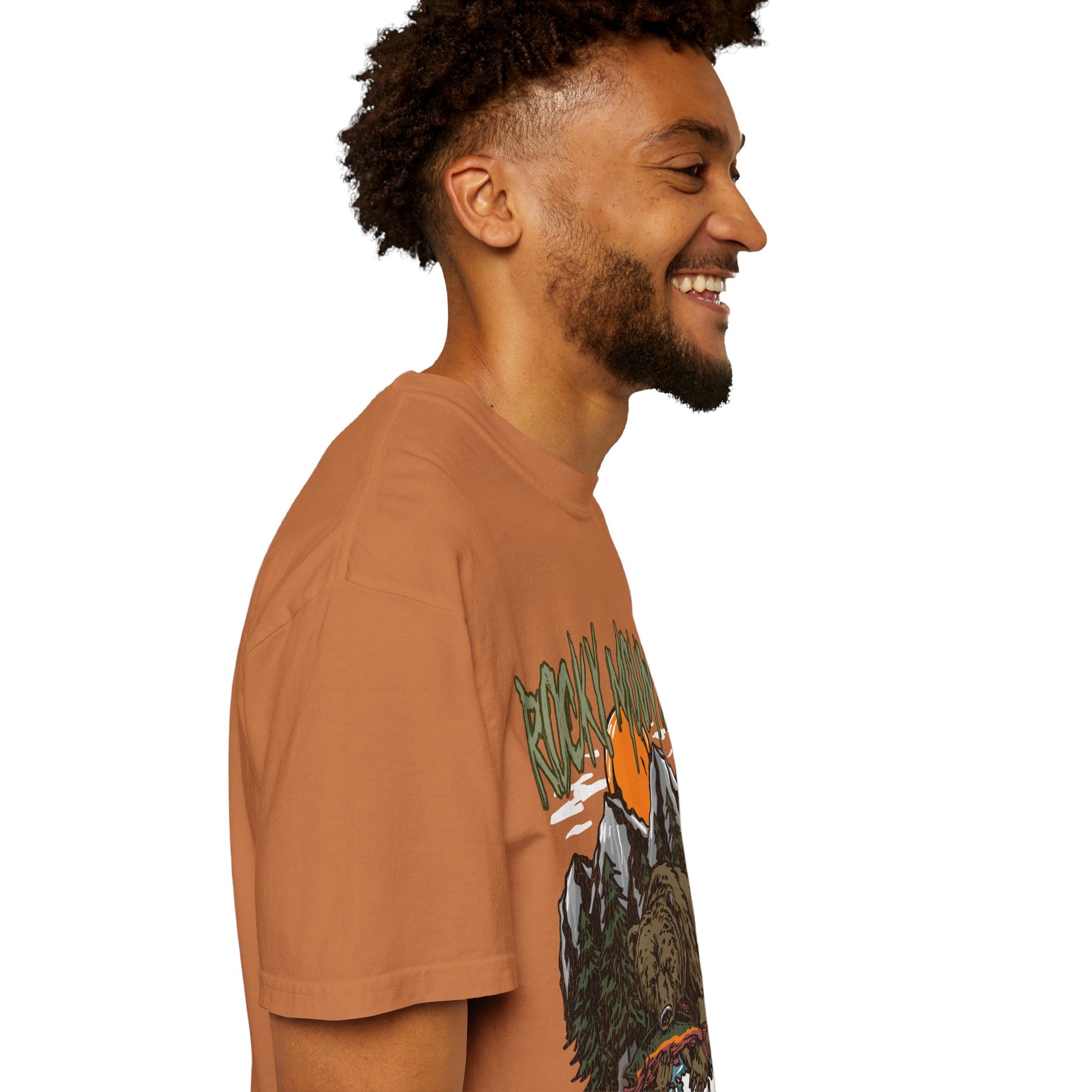 Stand face-to-face with the wild. This front-print tee from our Apex Collection features a powerful grizzly catching its prize against a Rocky Mountain backdrop. Bold design, rugged spirit — built for those who lead the pack.
